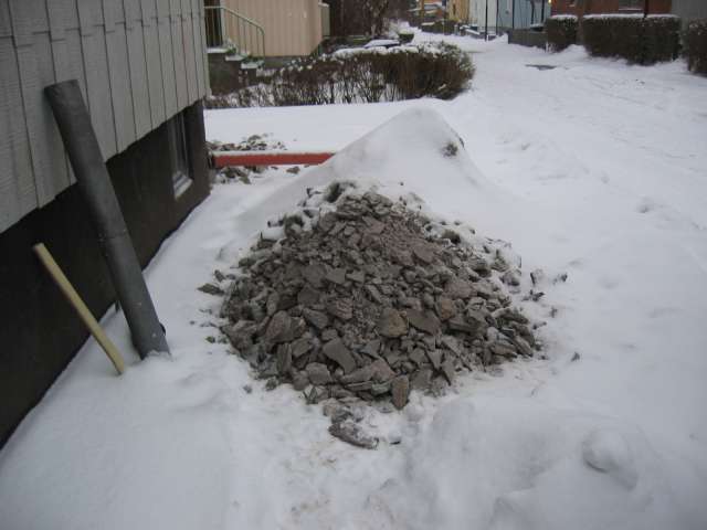 Spisen åkte ut på skräphögen ut emot gatan. Det börjar se riktigt skräpigt ut där nu. Tvättmaskinen åkte upp ur källaren också och fick stå på spisens gamla plats.