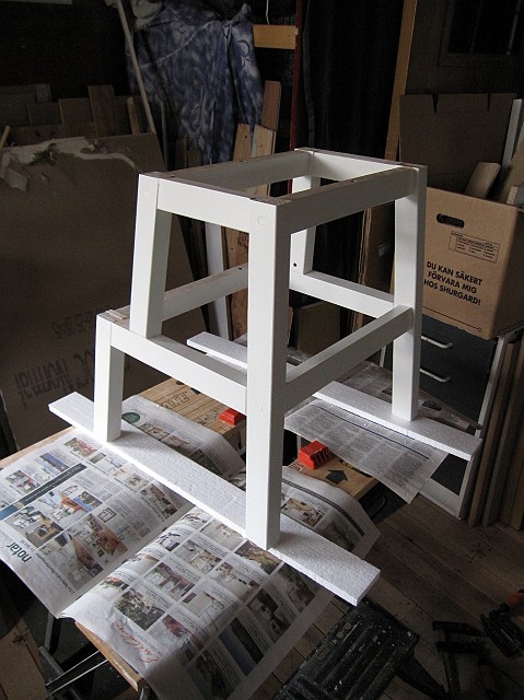 Rullvagnen och pallen blev klara. Det blev riktigt fint. Köket belv liksom mycket mer färdigt när vagnen kom in dit.