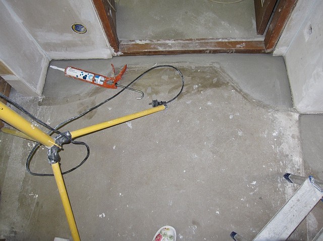 A trolley in the kitchen and a lot of plumbing. Some wall and floor fixing in the shower in the basement.